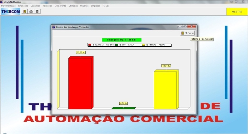 Umas das Telas de Gráficos de Vendas