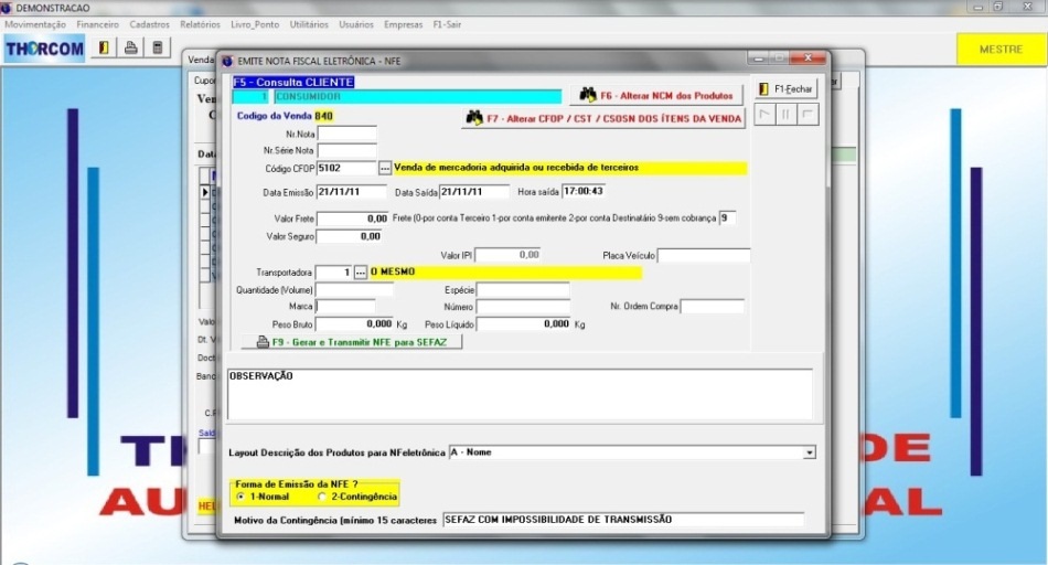 Tela de Emissão da NF-e
