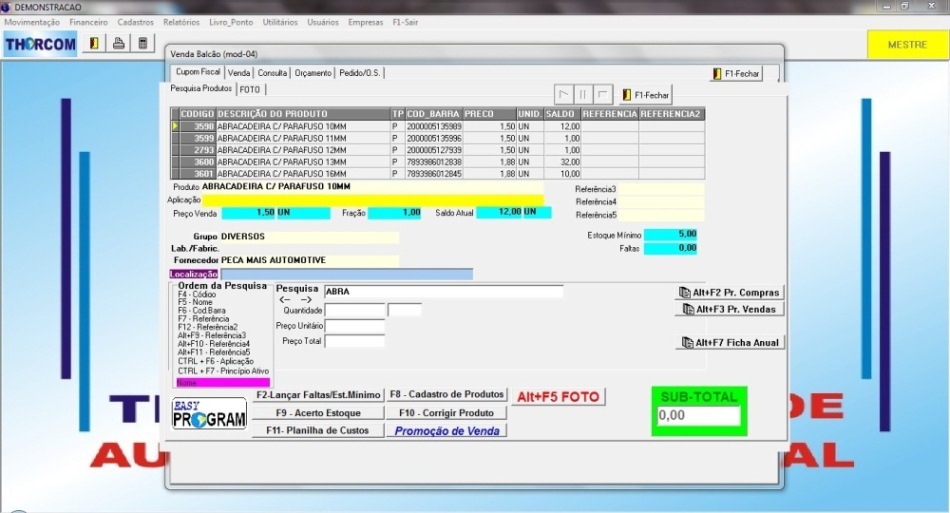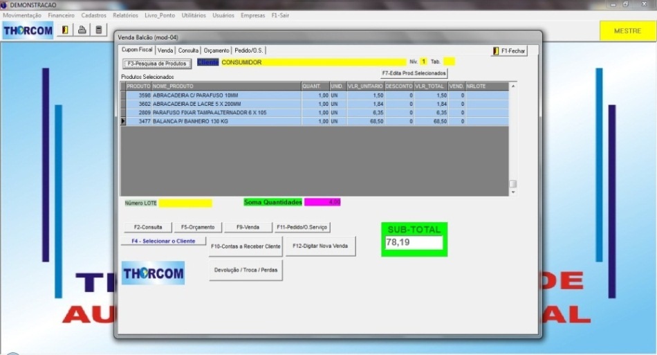 Tela de Vendas - escolha de produtos