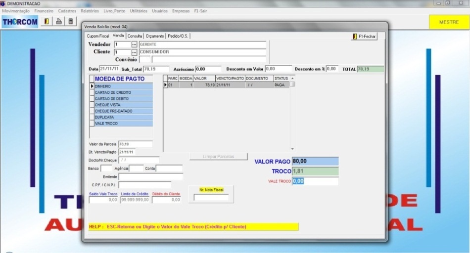 Tela de Vendas - finalização