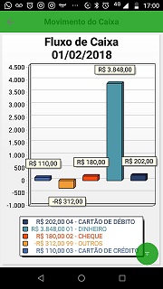 App mostrando Saldo do Caixa do dia 01/02/2018