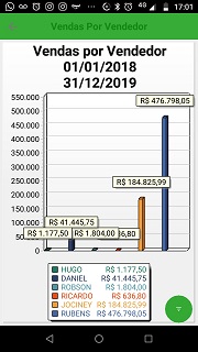 App mostrando Total de Vendas por Vendedor de um Período escolhido